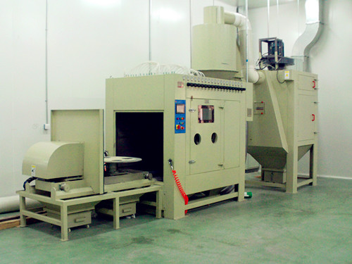 九 除塵系統(tǒng) 該設(shè)備配備了一臺干式除塵器,用于清理噴砂過程形成的粉塵,除塵器安裝于噴砂室體旁邊。 該除塵器為慮筒式除塵器,壓縮空氣通過脈沖閥控制通過慮筒。 經(jīng)除塵器后潔凈的氣體通過換氣扇及消音器直接排出。 粉塵經(jīng)過閘閥落入到底部倉而排到廢料箱。